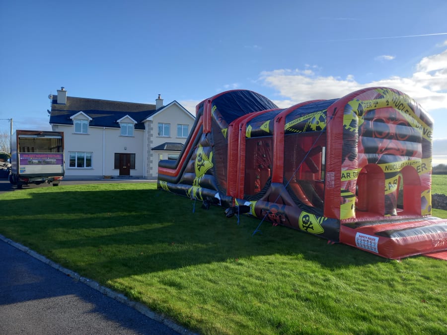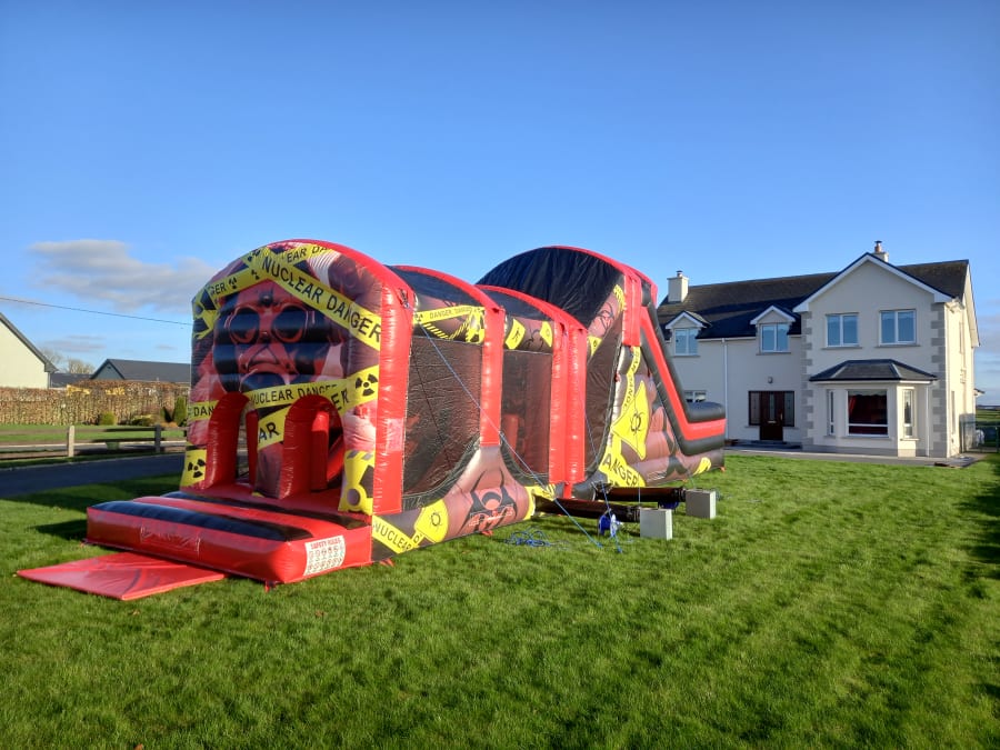 Bring big thrills and safe fun to your next event with our 45 Foot long Nuclear Danger 9 Foot HIGH SLIDE Obstacle Course — a crowd-pleasing centerpiece for children's play activity that our team loves to set up for your children's birthdays, communions, confirmations & christenings 🎉 This dramatic course combines speed, challenge, and safety so kids can climb, dash, and slide with confidence. 😊